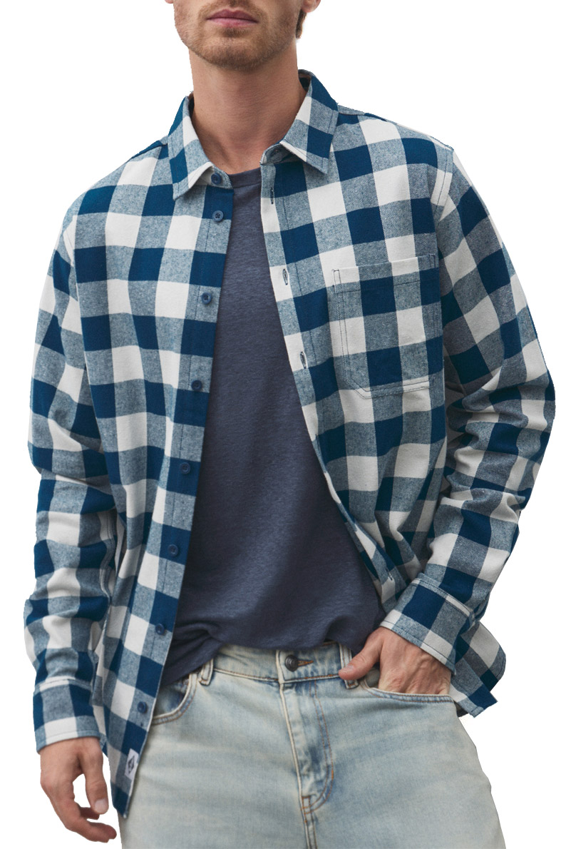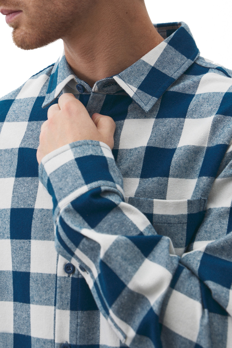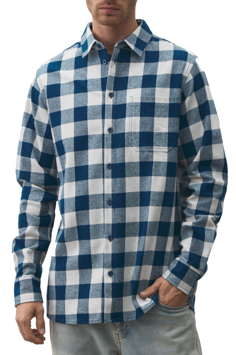 Мужская рубашка с длинными рукавами Lee Cooper. Теплая клетчатая рубашка прямого кроя. Цвет голубой/синий. Состав 100% хлопок.