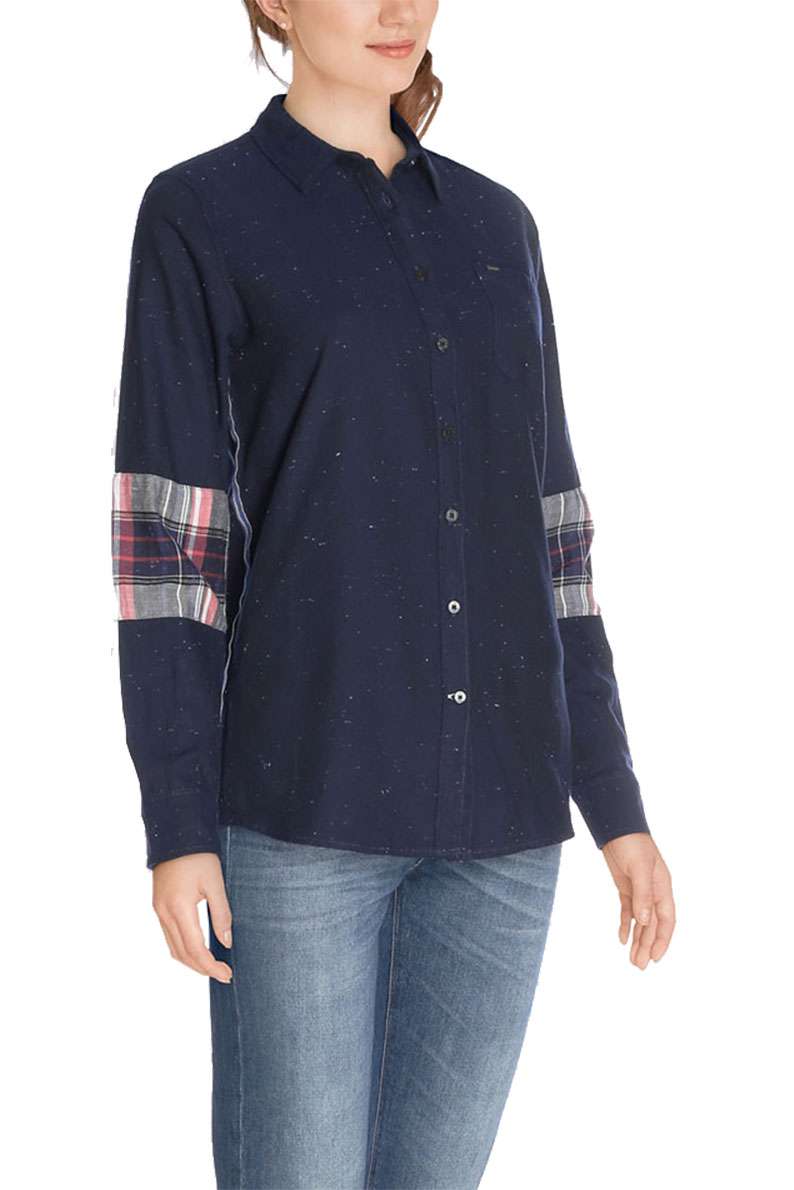 Женская рубашка Lee One Pocket Shirt Midnight Blue изготовлена из материала высокого качества. Прямой крой. Очень мягкая и приятная ткань. С цветным декором на рукавах и вдоль талии.