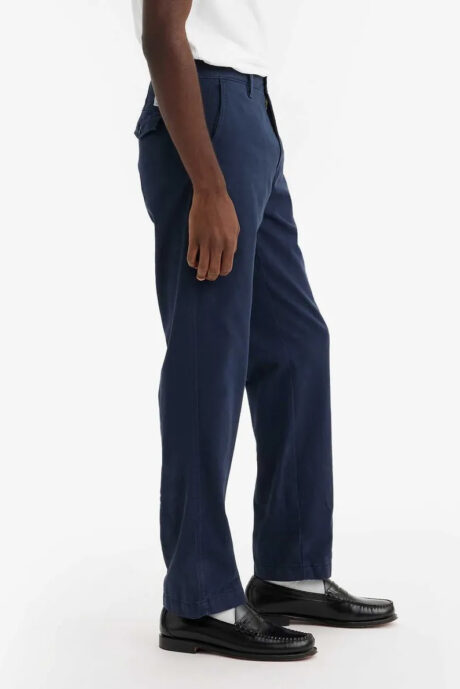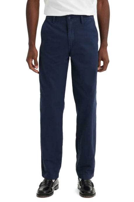 Мужские брюки Levi`s Chino изготовлены из материала высокого качества. Цвет тёмно-синий. Вид застежки — молния. Передние карманы покроя чино (хулиганы). Посадка средняя. Отличные брюки на каждый день.