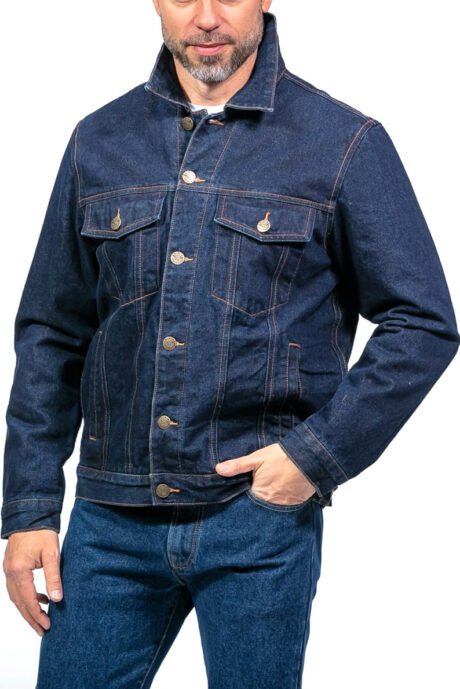 Классическая мужская джинсовая куртка Montana 12063 RW Original изготовлена из материала высокого качества. Классический крой, 4 внешних кармана, утеплена стеганной подкладкой. Цвет темно-синий. Вид застежки — болты.