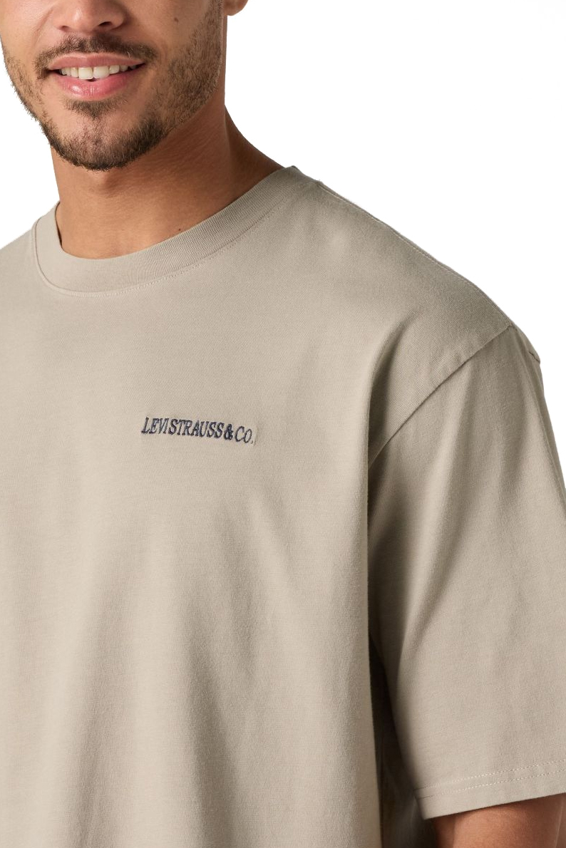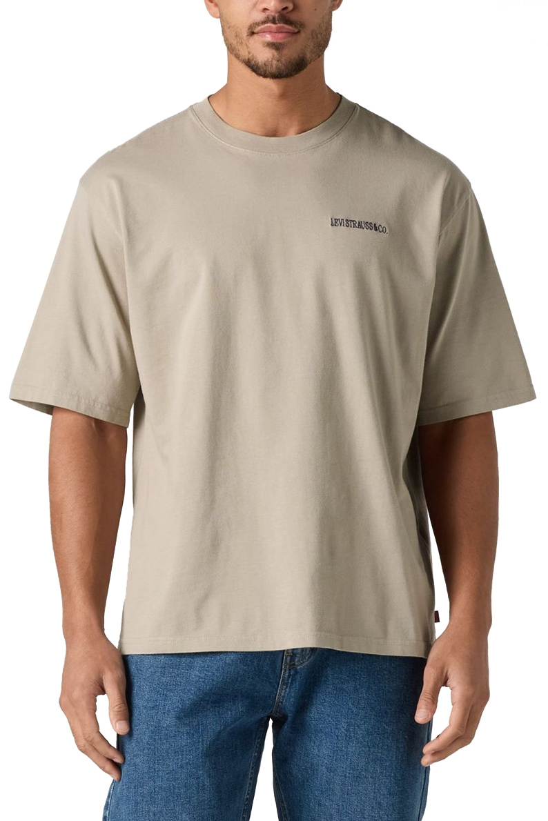 Мужская футболка Levi’s с фирменным логотипом . Изготовлена из 100% хлопковой ткани высокого качества, обладающей такими свойствами: воздухопроницаемость, мягкость, лёгкость. Ткань не мнётся и не скатывается. Цвет бежевый. Сободный крой.
