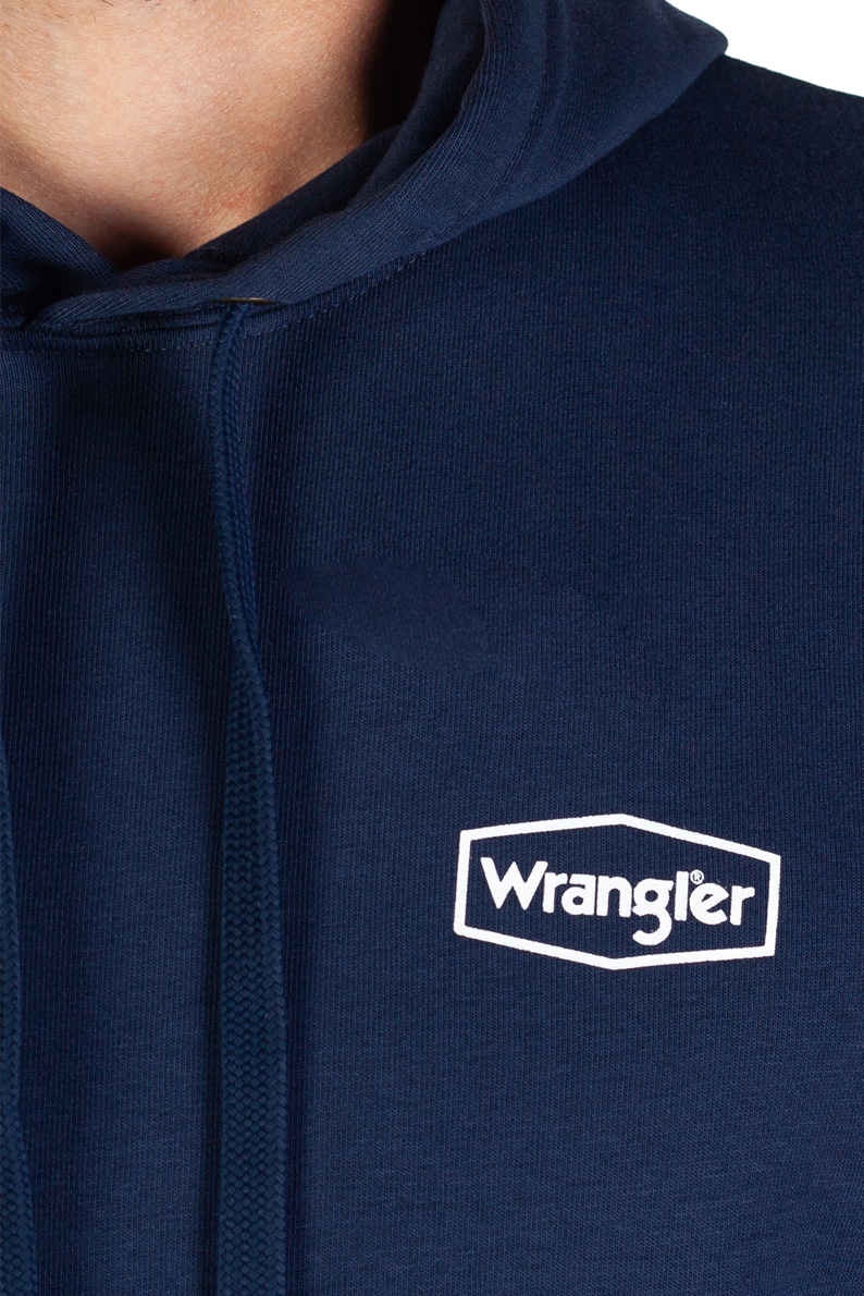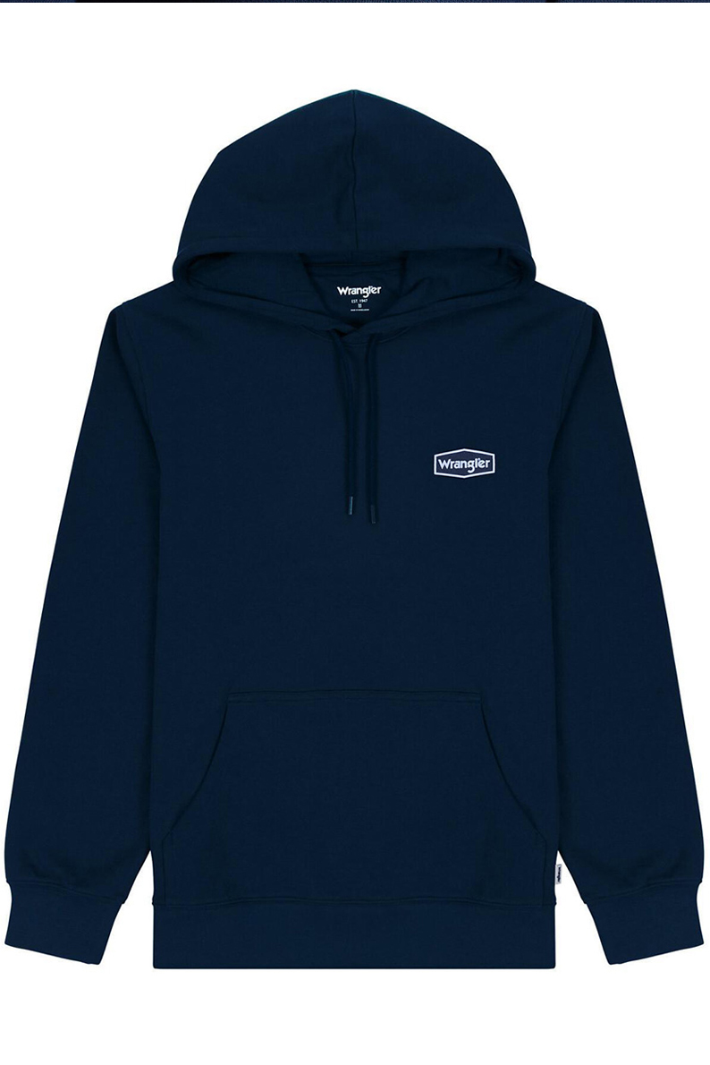 Мужская толстовка с капюшоном Wrangler Hoodie Navy изготовлена из материала высокого качества. Состав 80% хлопок, 20% полиэстер. Цвет синий. Комфортная и удобная модель.