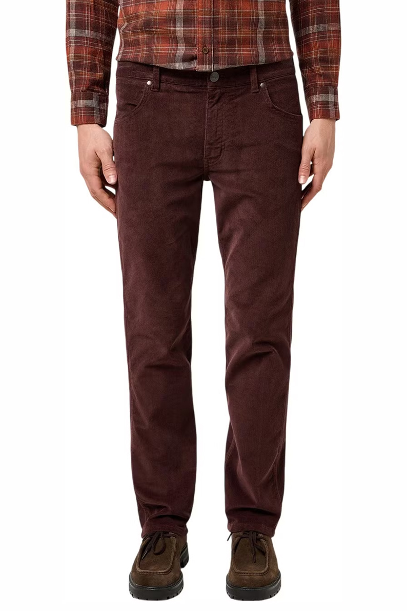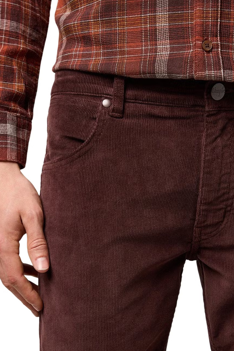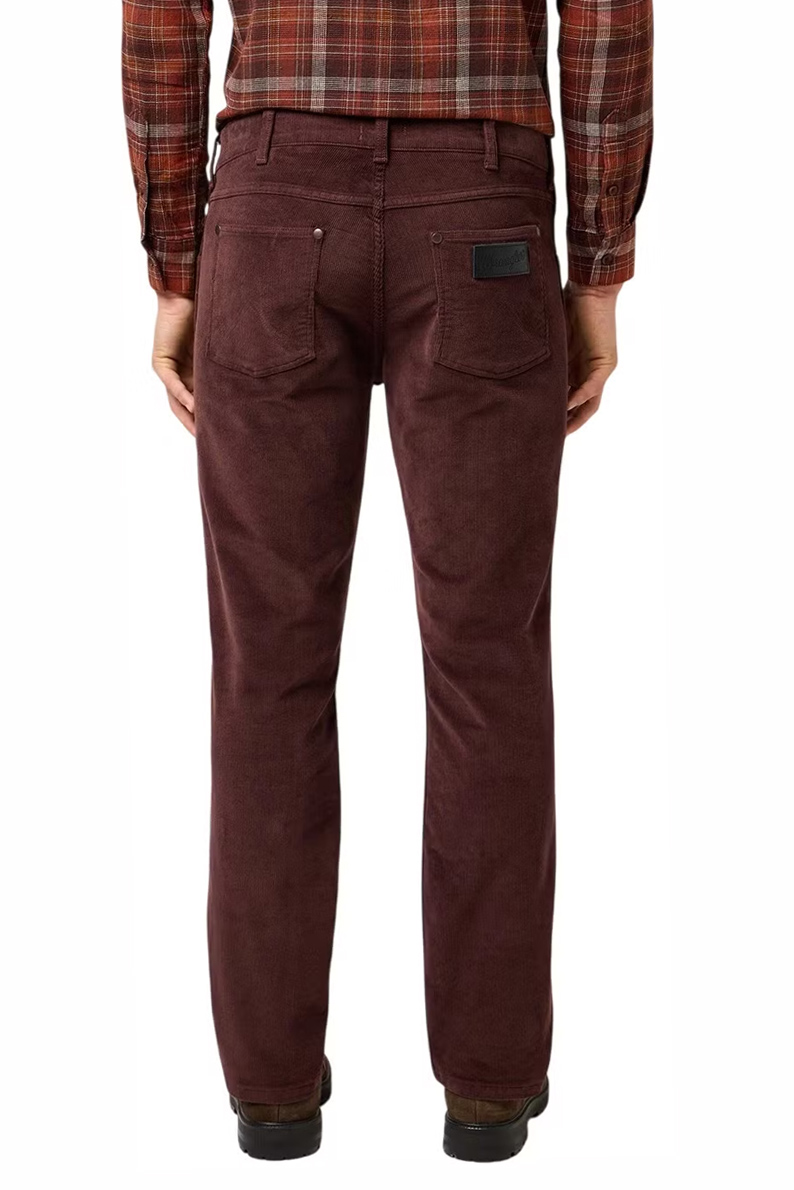 Вельветовые пяти карманные мужские брюки Wrangler 112370724 Greensboro Mahogany. Изготовлены из материала высокого качества. Цвет бордовый. Состав 98% хлопок, 2%эластан. Вид застежки молния. 7 шлевок для ремня, фирменная строчка в виде буквы «W« и черная фирменная кожаная нашивка на заднем кармане. Посадка средняя. Прямые штанины хорошо смотрятся как с манжетами, так и без них, позволяя вам одевать их по своему усмотрению. Брюки Greensboro, которые идеально подходят для работы или выходных.