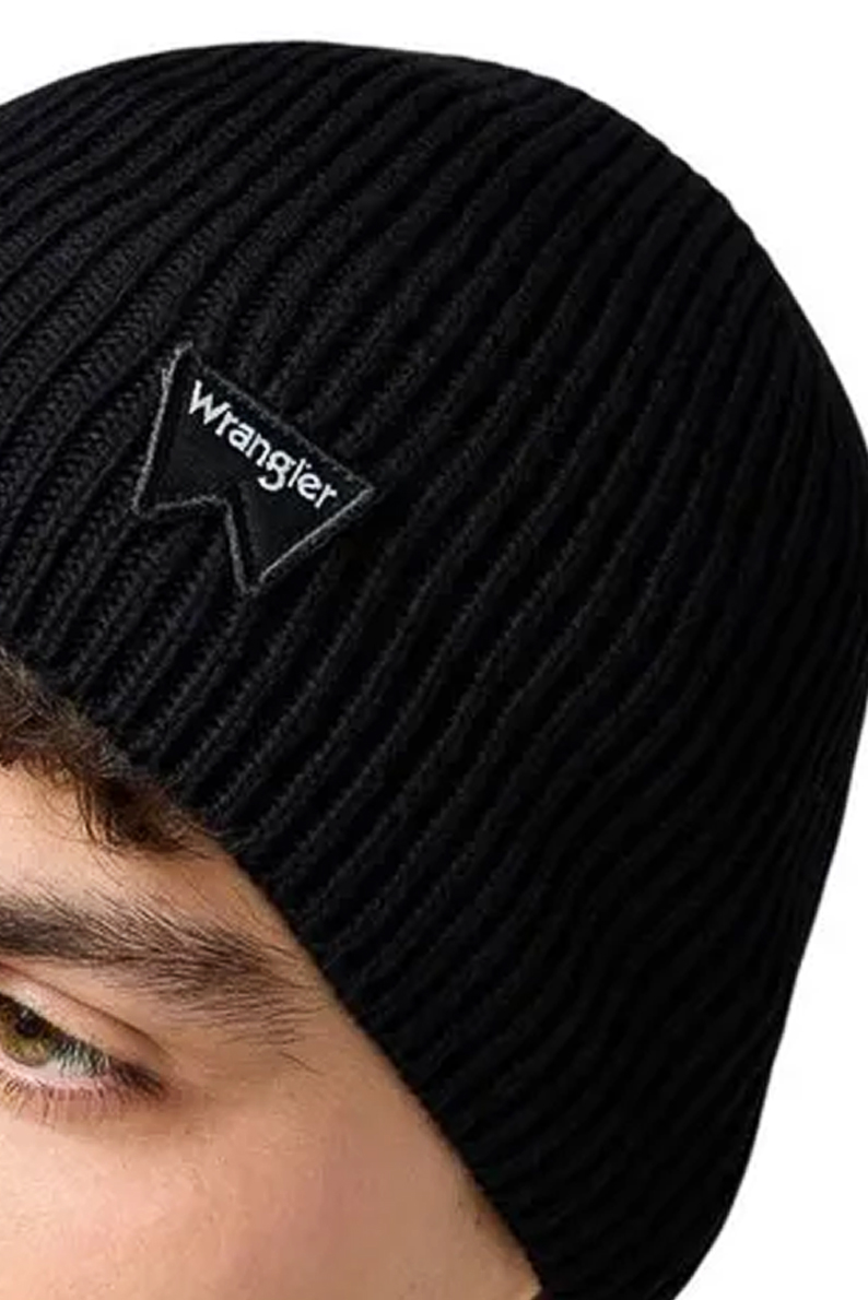 Вязаная шапка Wrangler Easy Beanie. Цвет черный. Универсальная шапка для мужчин и женщин. Хорошо тянется.