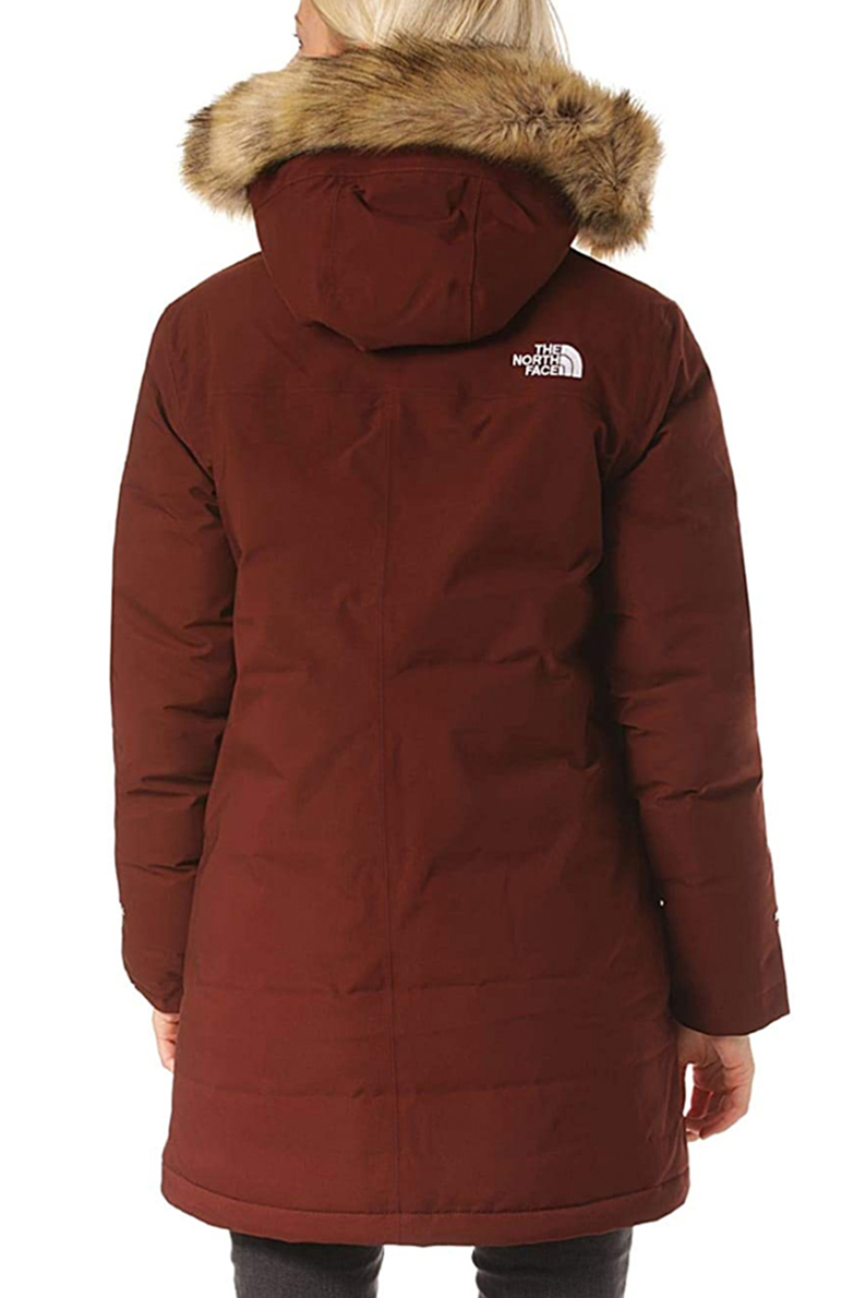 Куртка зимняя женская The North Face сделана из материала высокого качества. Вид застежки — молния. Капюшон с искусственным мехом. Полимерная пропитка. Цвет бордовый.